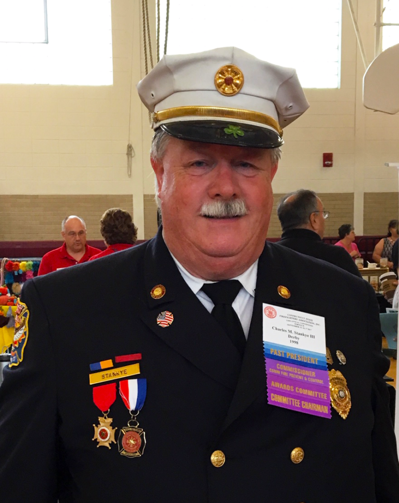 Charles M. Stankye, III, of Derby is a former Chief of the Derby Fire Department and a Past President of the Connecticut State Firefighters Association. "Chuck" has the distinct honor of also following in his father's footsteps as a Hall of Fame Inductee and as a Commissioner with the State's Commission on Fire Prevention and Control. He is a long time member of Derby's Paugassett Hook & Ladder Company #4, beginning in 1974, as a member of the Civil Defense Auxiliary. During his years of service, he held multiple Line Offices.