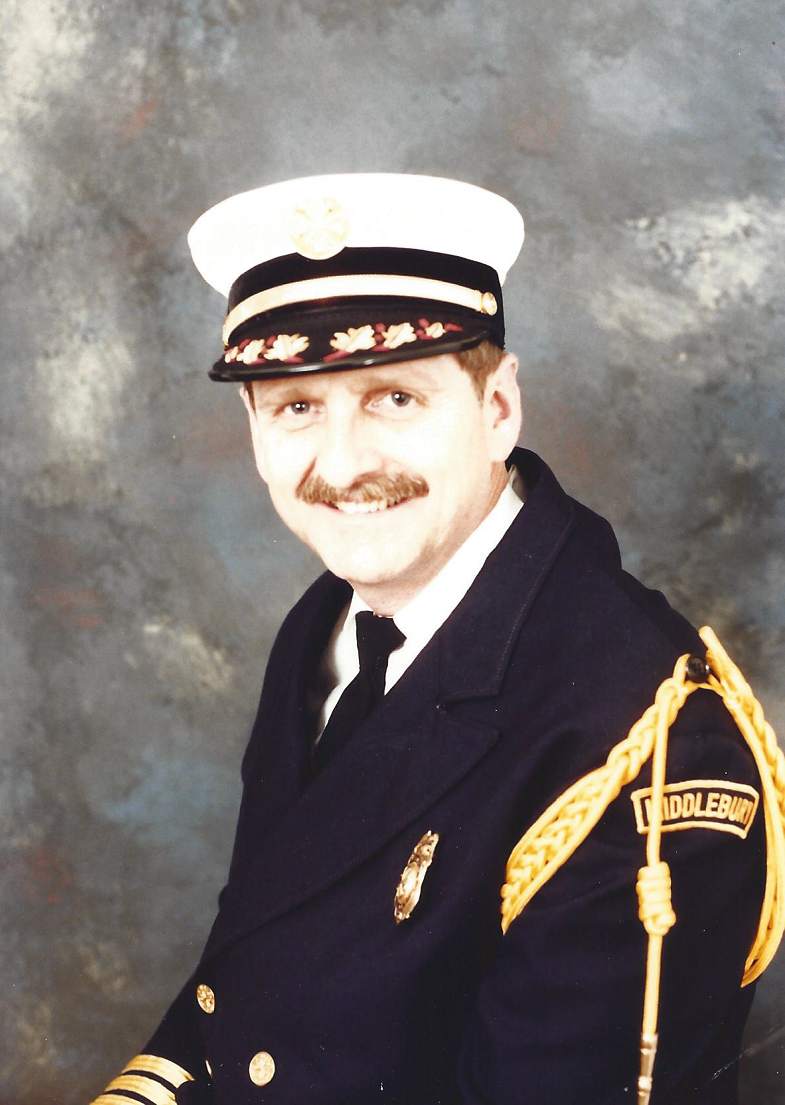 Richard Nicol served for many years with the Middlebury Fire Department – holding the various ranks of Lieutenant, Captain, Drill Master, Deputy Chief, Chief and Commissioner.