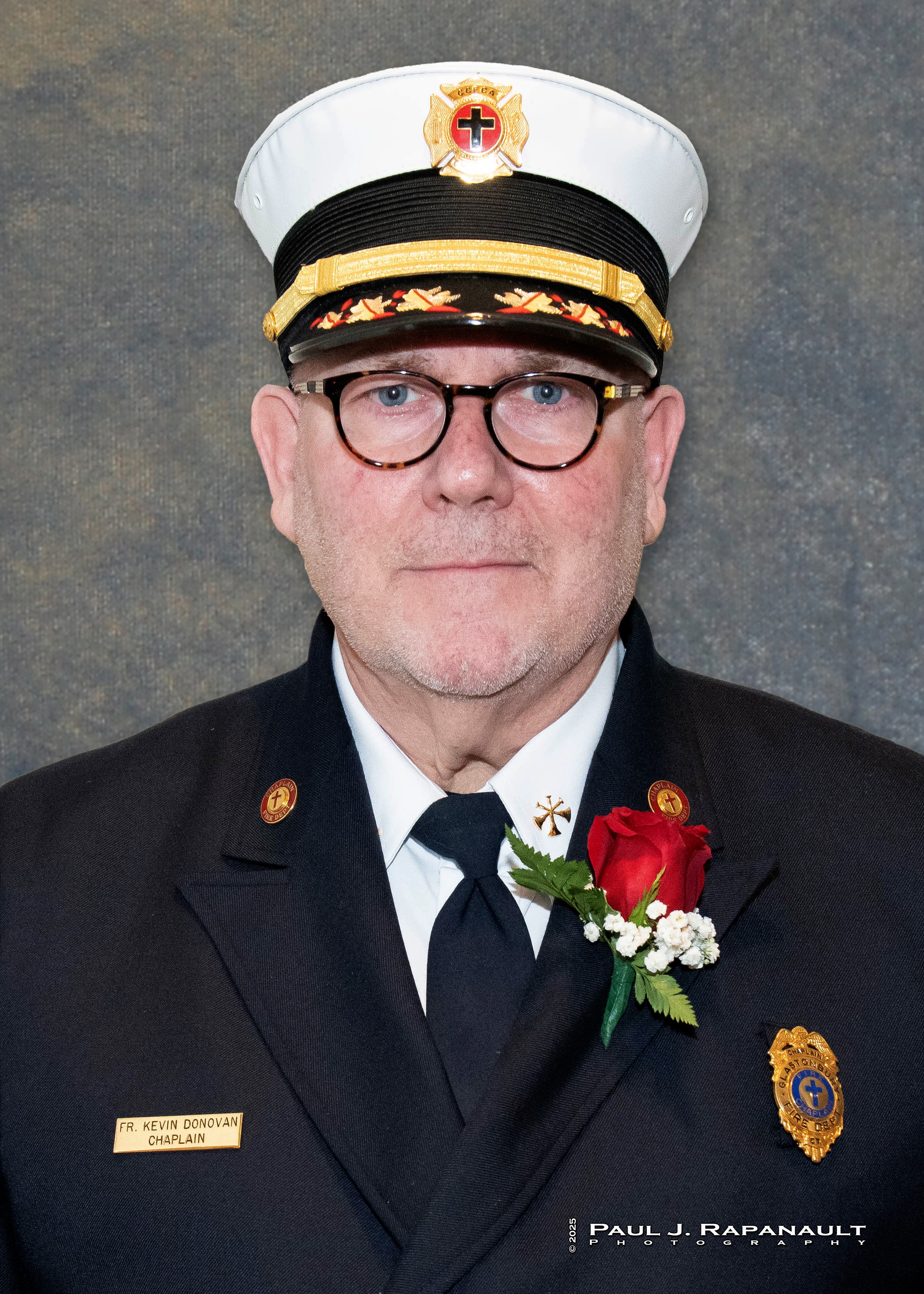 The Rev. Kevin G. Donovan, a Roman Catholic Priest of the Archdiocese of Hartford, who, at the time of his Hall of Fame Induction, was serving as the pastor of St. Dunstan Parish in Glastonbury and as a Chaplain with the Connecticut State Firefighters Association. He has been a member of Company 4 of the Glastonbury Fire Department since 2021, and also serves as their Department Chaplain.